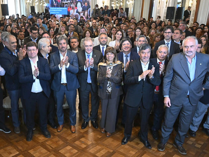 A partir de los resultados obtenidos durante la primera cohorte -presentada en 2025-, en la que más de 10.800 docentes completaron el programa; el Gobernador presentó oficialmente la segunda edición de esta capacitación que tiene como fin último impactar directamente en más de 460.000 estudiantes tucumanos de todos los niveles del sistema educativo. En el Salón Blanco de Casa de Gobierno, el gobernador encabezó el acto junto al vicegobernador, Miguel Acevedo; el vicepresidente del IDEP, Juan Casañas; la ministra de Educación, Susana Montaldo; el director ejecutivo del Argencon, Leandro Mora Alfonsín y el director de Digital House, Ignacio Sánchez Zinny.